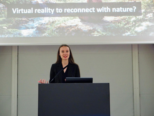 On Wednesday morning, Lisa Townsend took the stage to present our first CHI paper, “A Tree’s Perspective: Enhancing Nature Connectedness Through Transitional and Multisensory Virtual Reality Experiences,” in the VR and Immersive Technologies for Mental Health session. The paper earned a CHI 2026 Honorable Mention Award (top 5% of submissions), and if you want all the research details, check out the full post we wrote about it.
