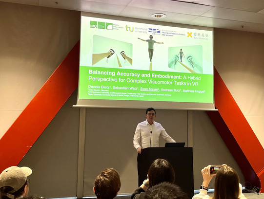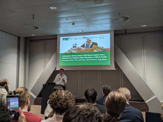 With respect to research, Prof. Mayer appeared twice in the main-program paper sessions, to present joint work on behalf of co-authors who could not attend the conference: "Anticipation Before Action: EEG-Based Implicit Intent Detection for Adaptive Gaze Interaction in Mixed Reality" and "Balancing Accuracy and Embodiment: A Hybrid Perspective for Complex Visuomotor Tasks in VR.”
