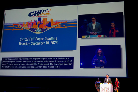 The closing plenary then turned the page to CHI 2027 in Pittsburgh, USA. Prof. Dr. Sven Mayer, who will serve as Technical Program Chair for CHI 2027 together with Rosta Farzan (University of Pittsburgh), took the stage to share the submission timeline and a preview of next year's direction. So the trip back was less about wrapping up Barcelona and more about starting a new planning cycle. We are already sketching what we want to submit in Pittsburgh.